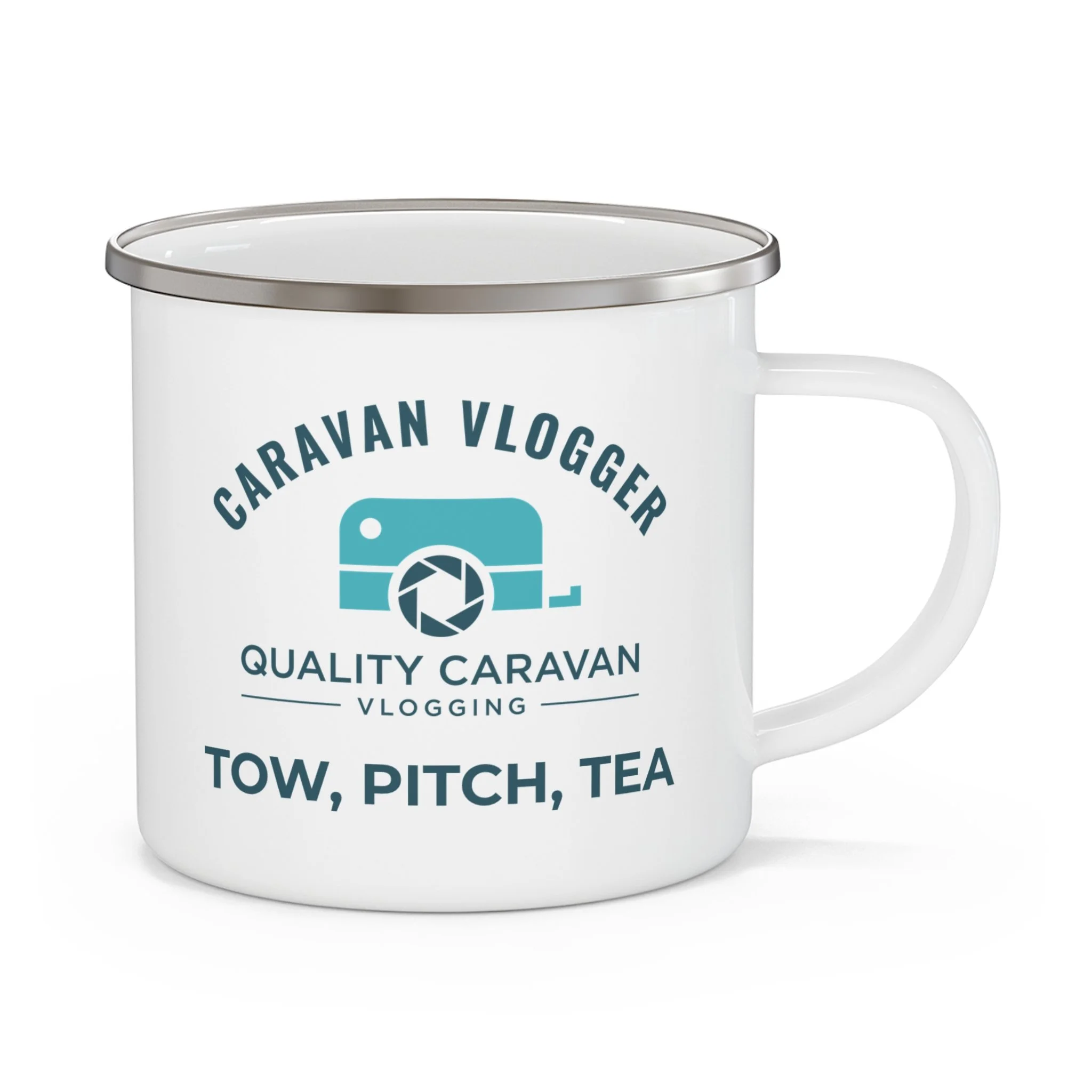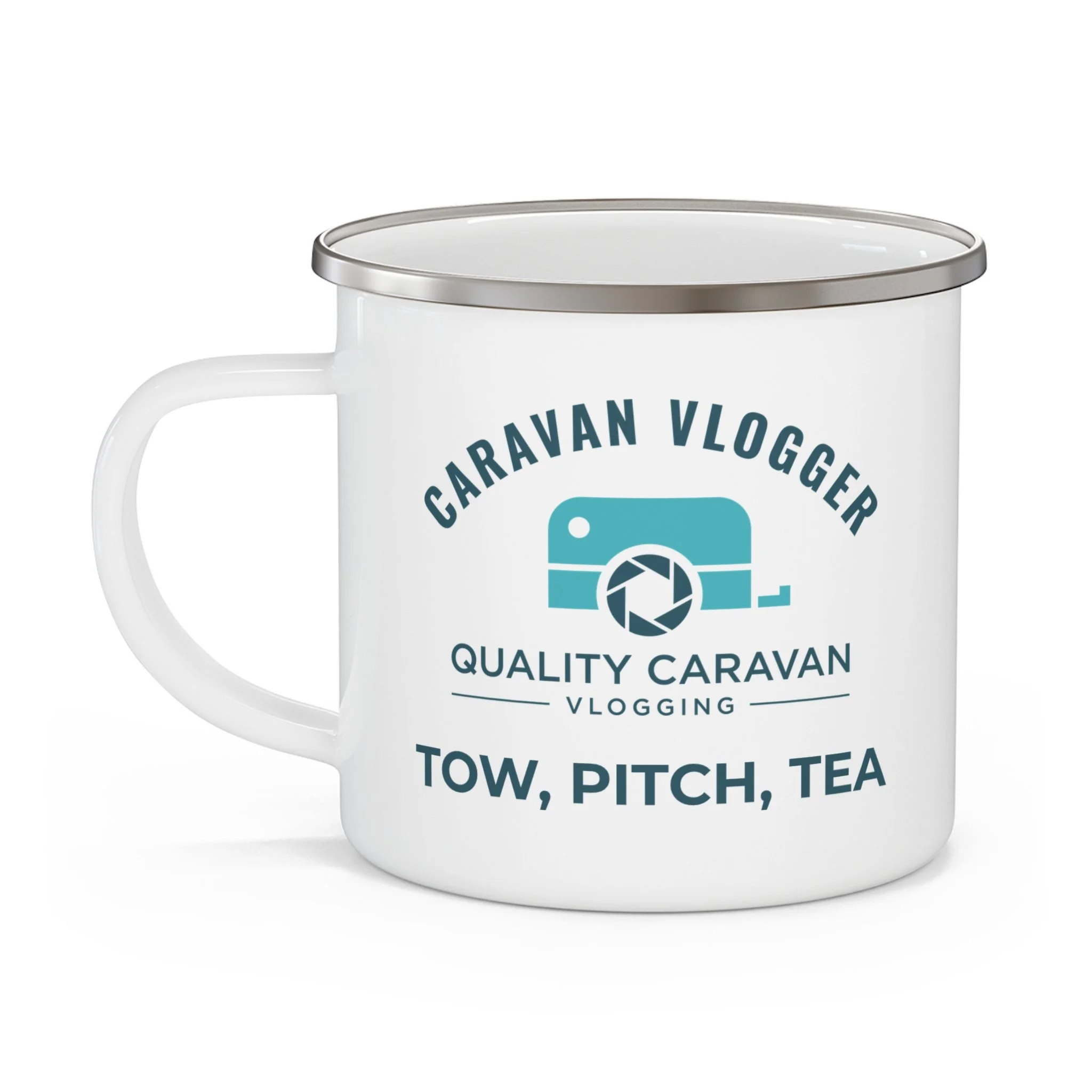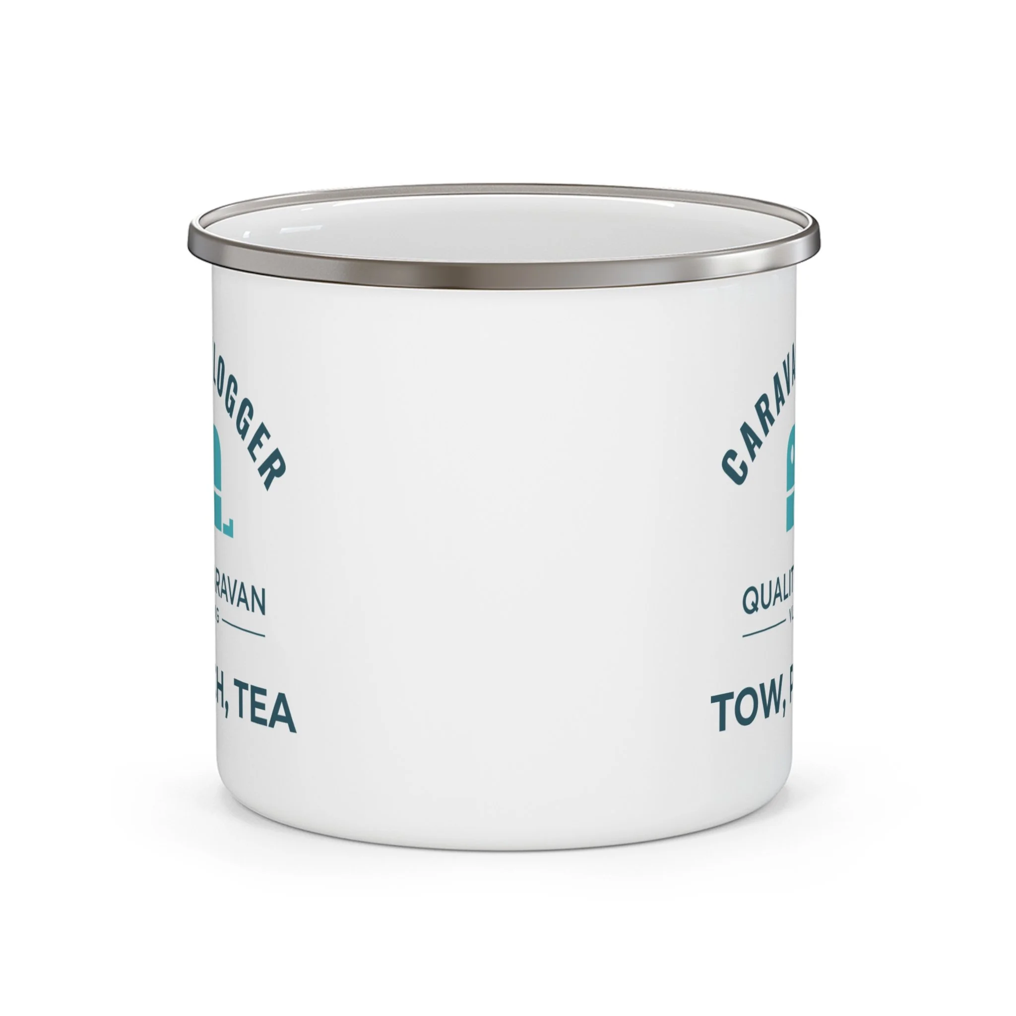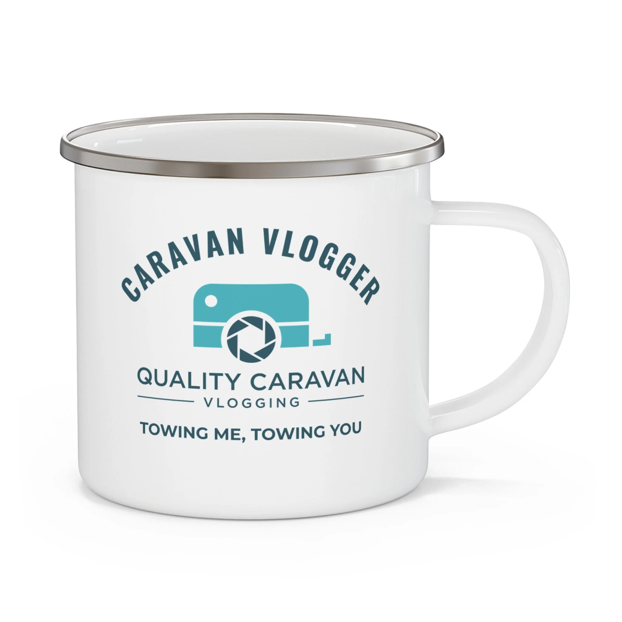 This Towing Me, Towing You enamel mug is a small nod to the fact that towing opinions are everywhere — and that half the fun is talking about them over a brew.